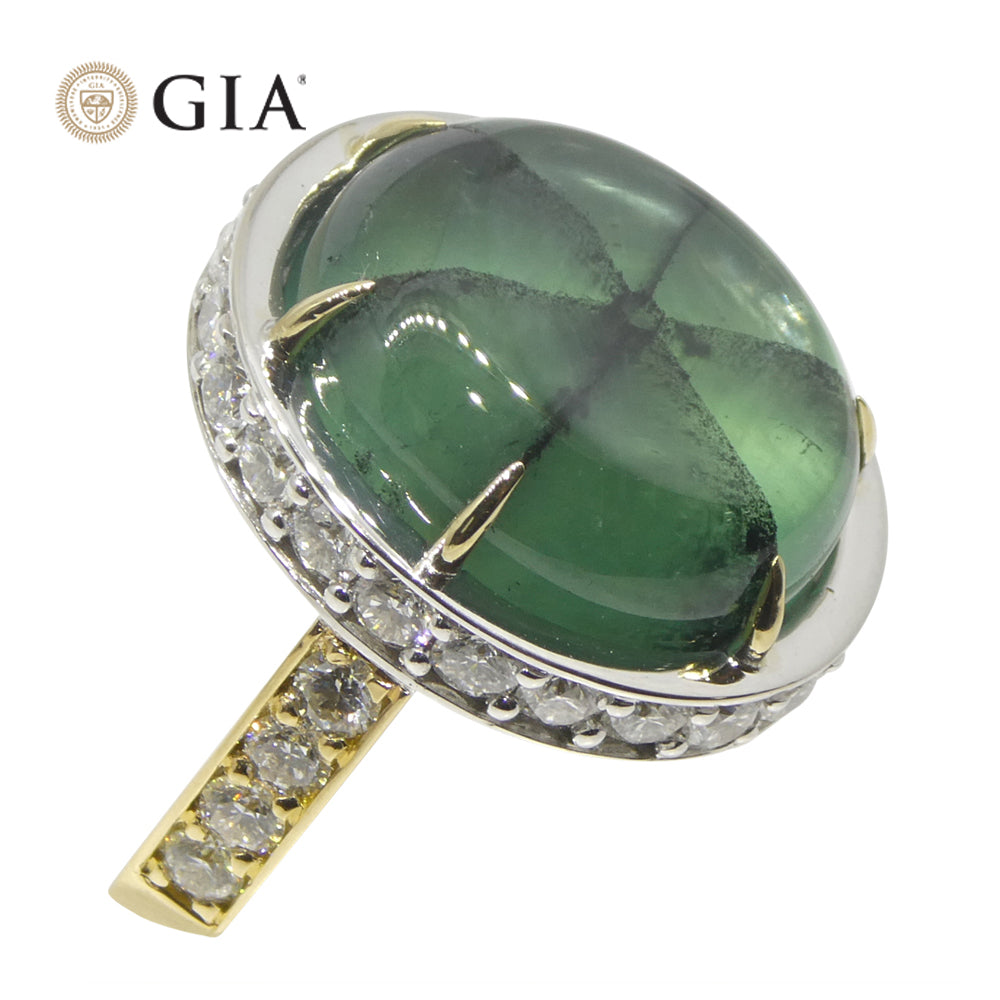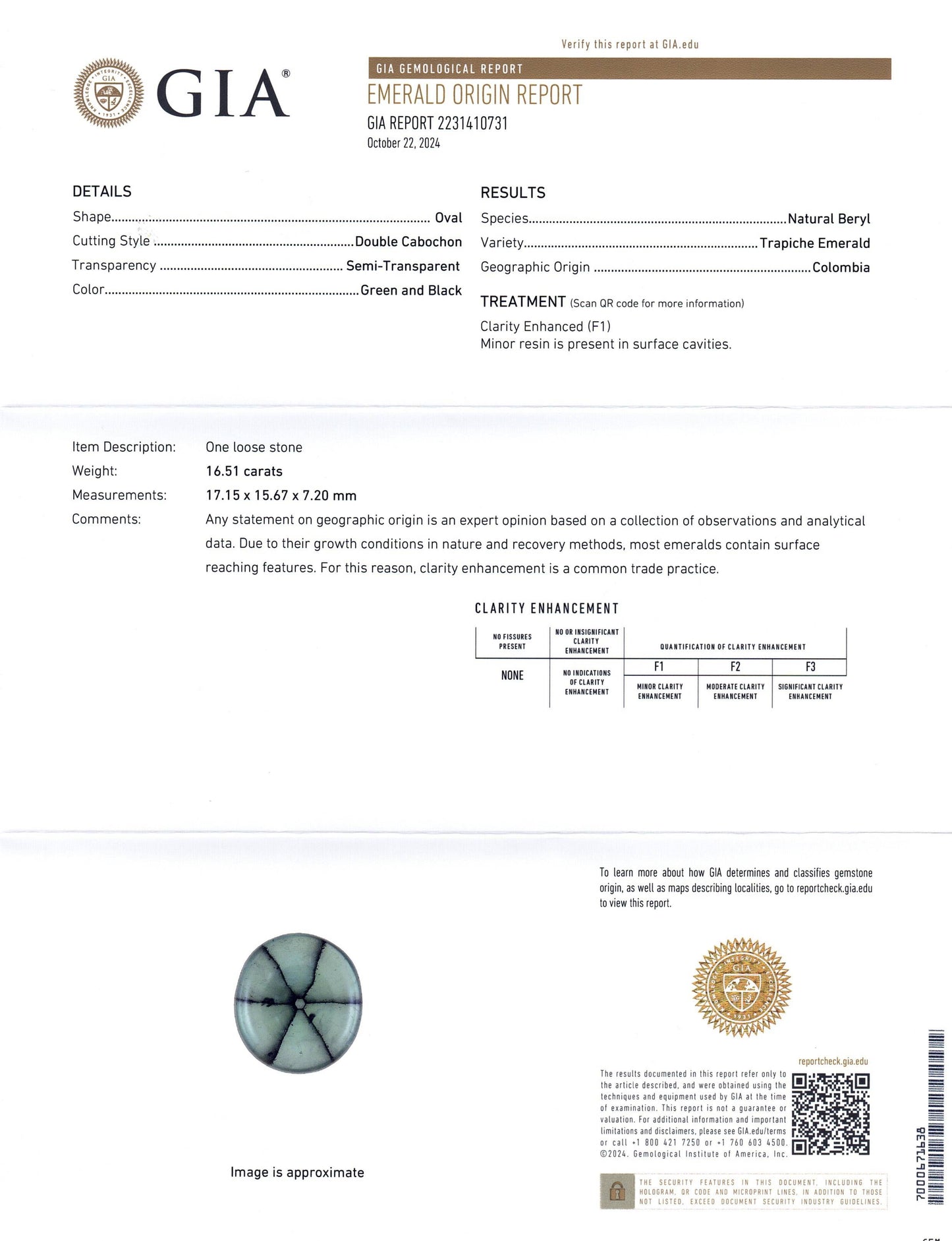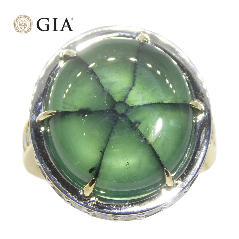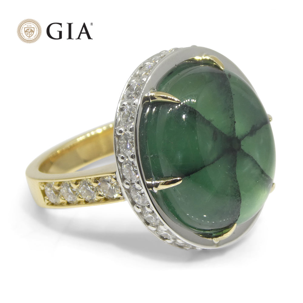 16.51ct Trapiche Green Emerald (F1), Diamond Statement Ring set in 18k White/Yellow Gold, GIA Certified Colombia