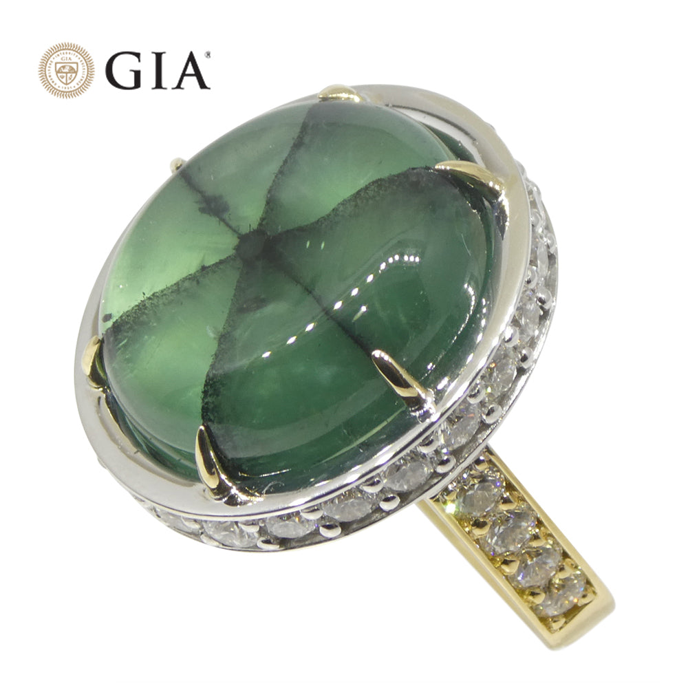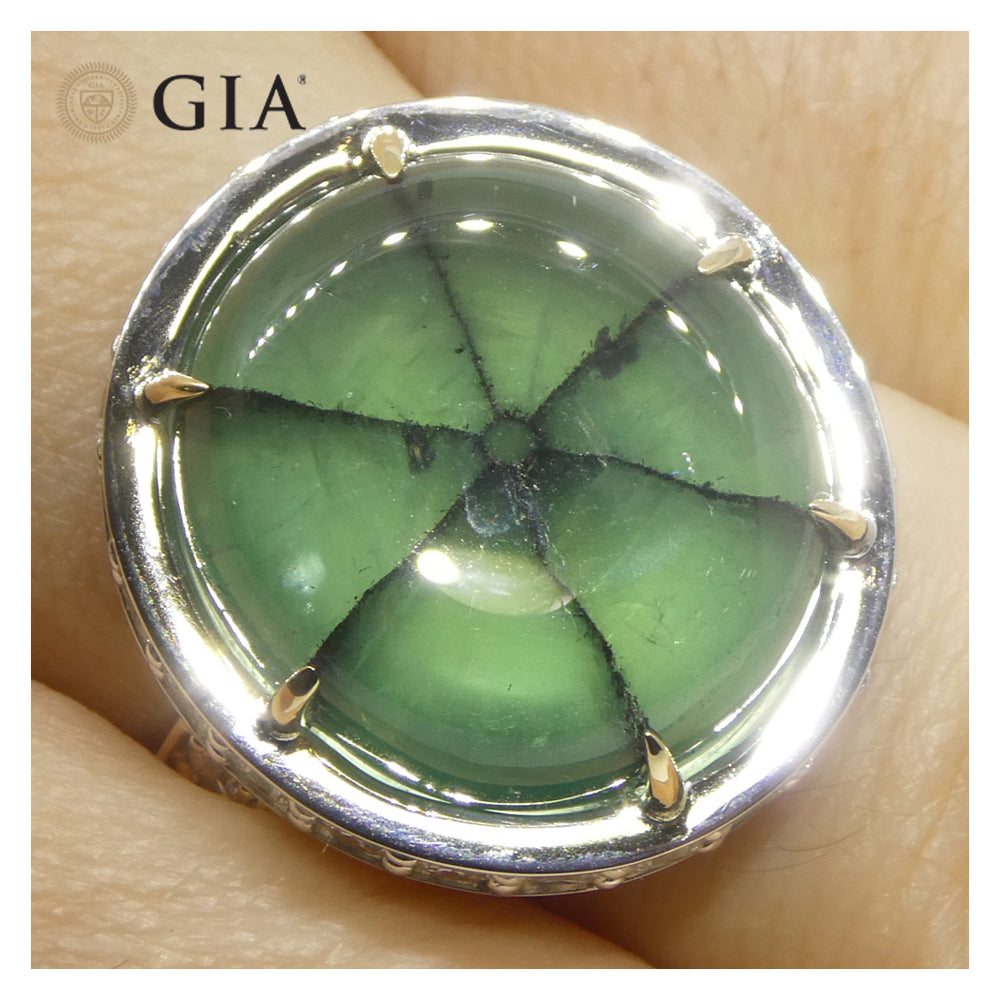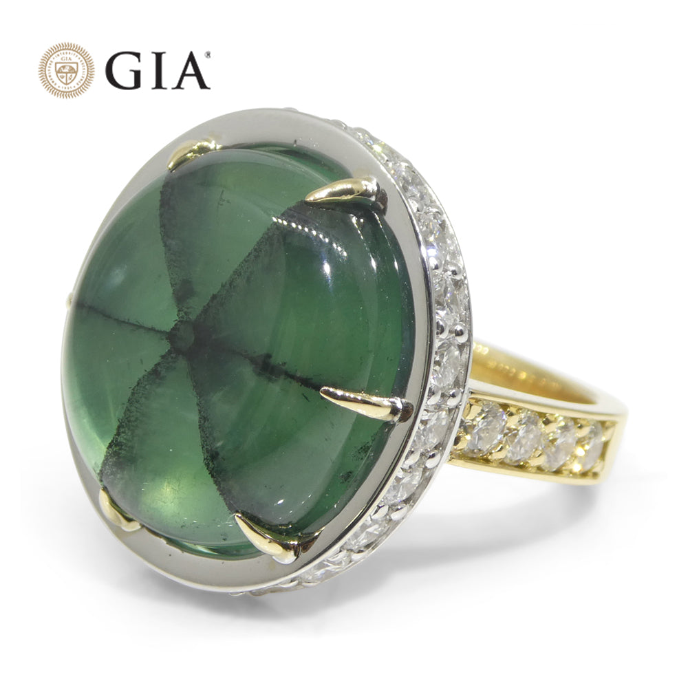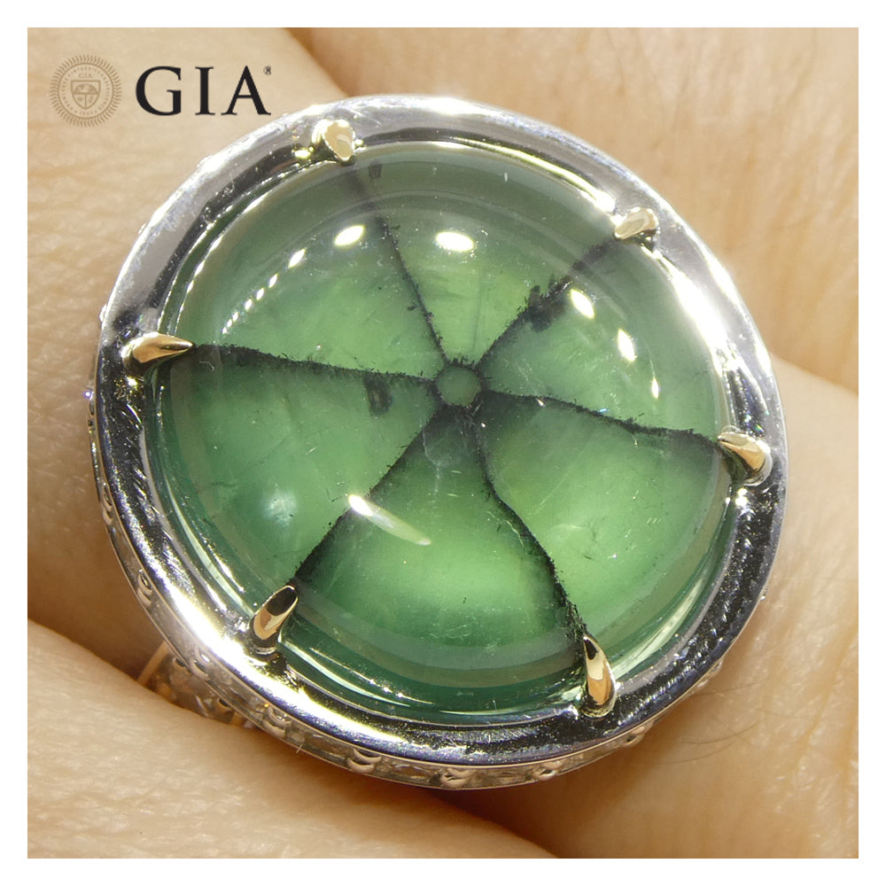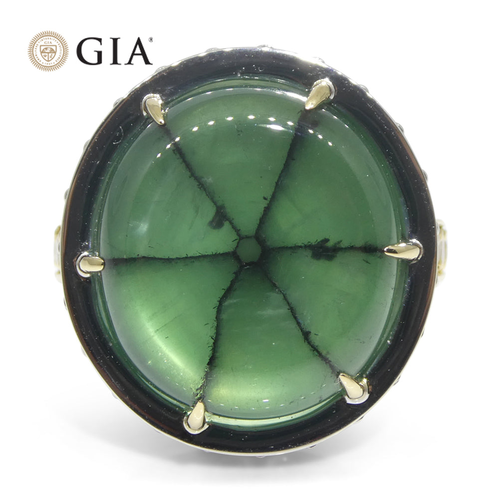 16.51ct Trapiche Green Emerald (F1), Diamond Statement Ring set in 18k White/Yellow Gold, GIA Certified Colombia