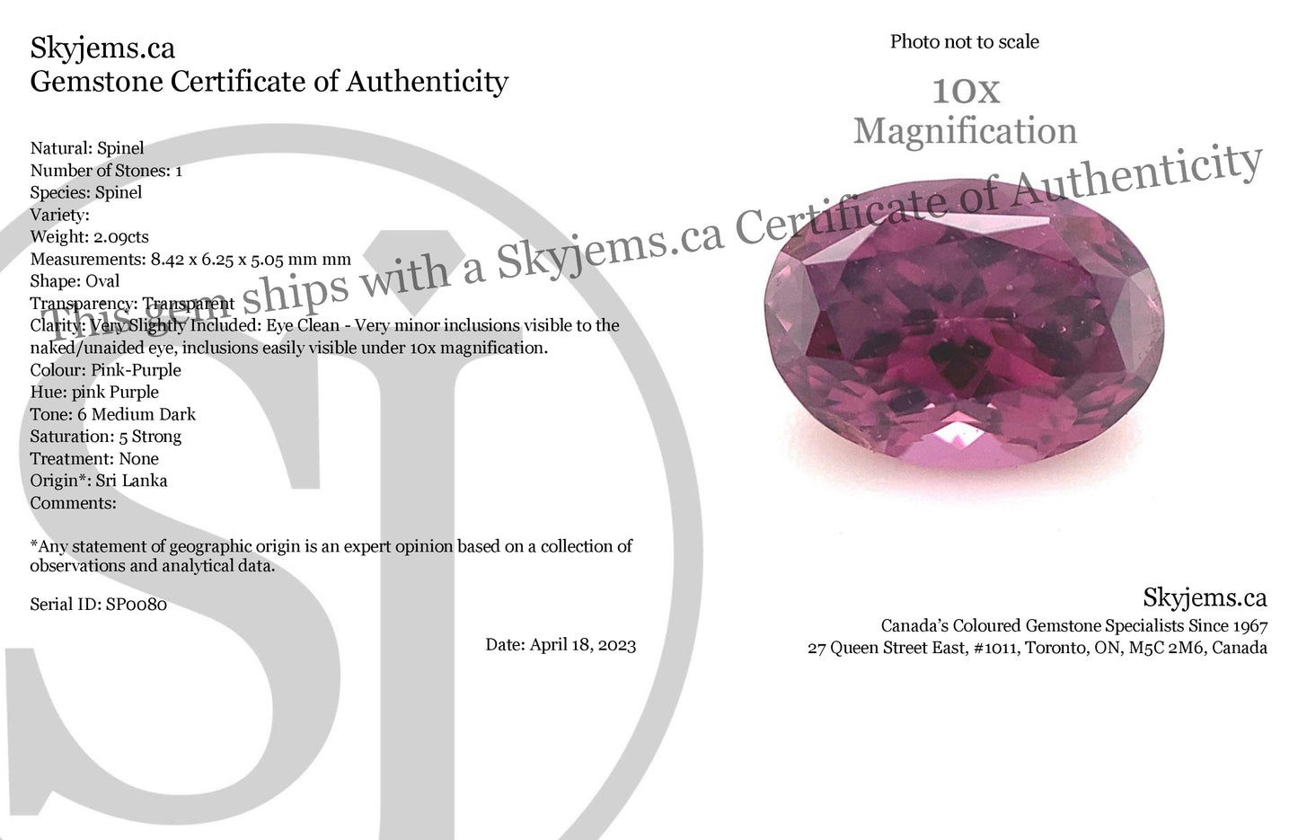 2.09ct Oval Pink-Purple Spinel from Sri Lanka Unheated