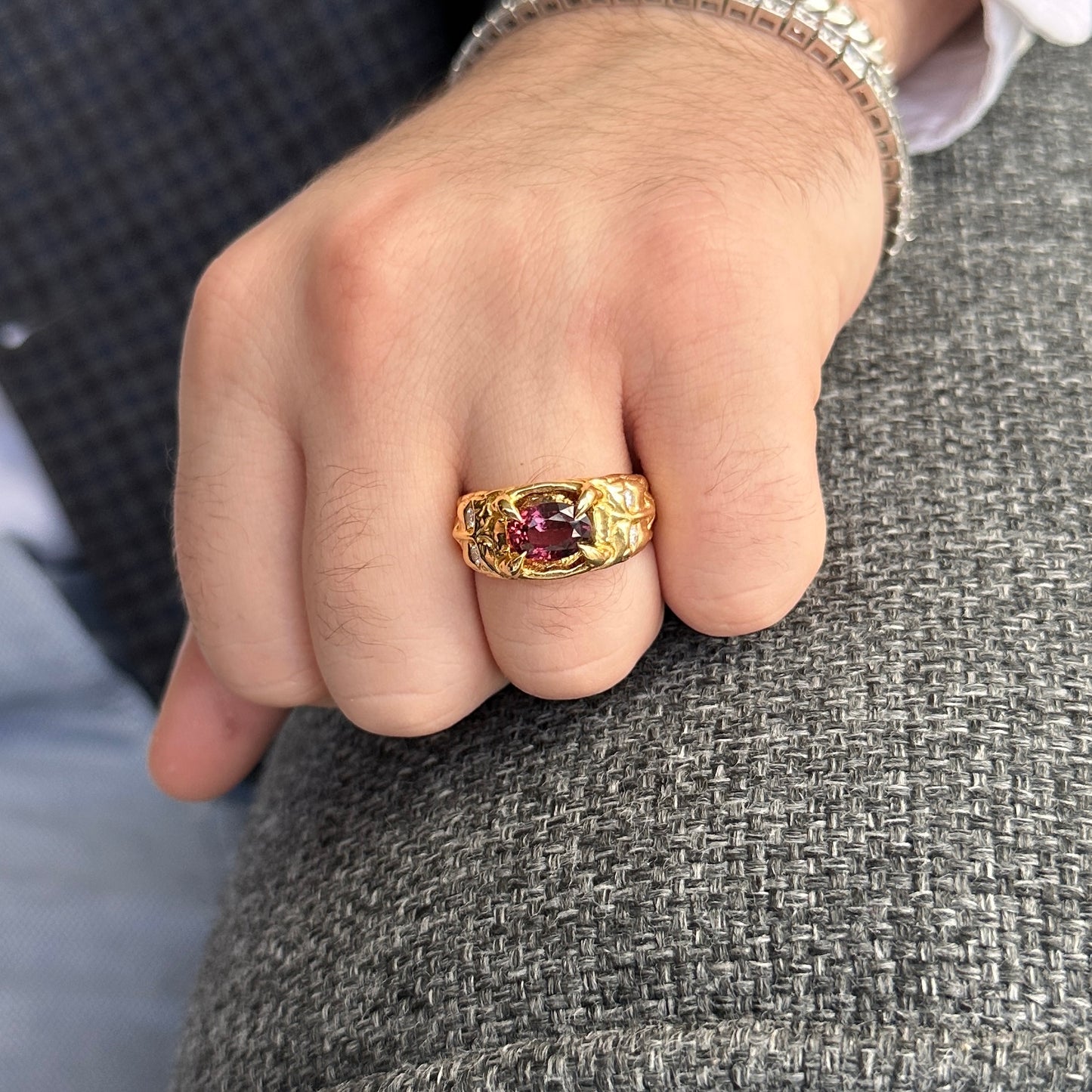 2.11ct Pink Spinel, Diamond Devil Mask Ring set in 14k Yellow Gold