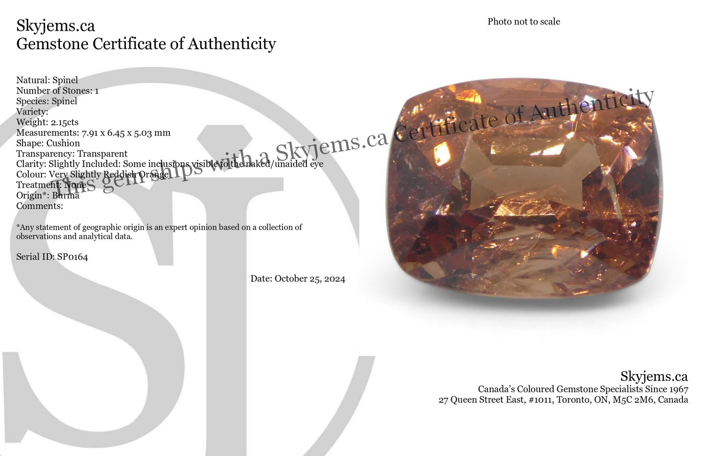 2.15ct Cushion Orange Spinel from Burma Unheated