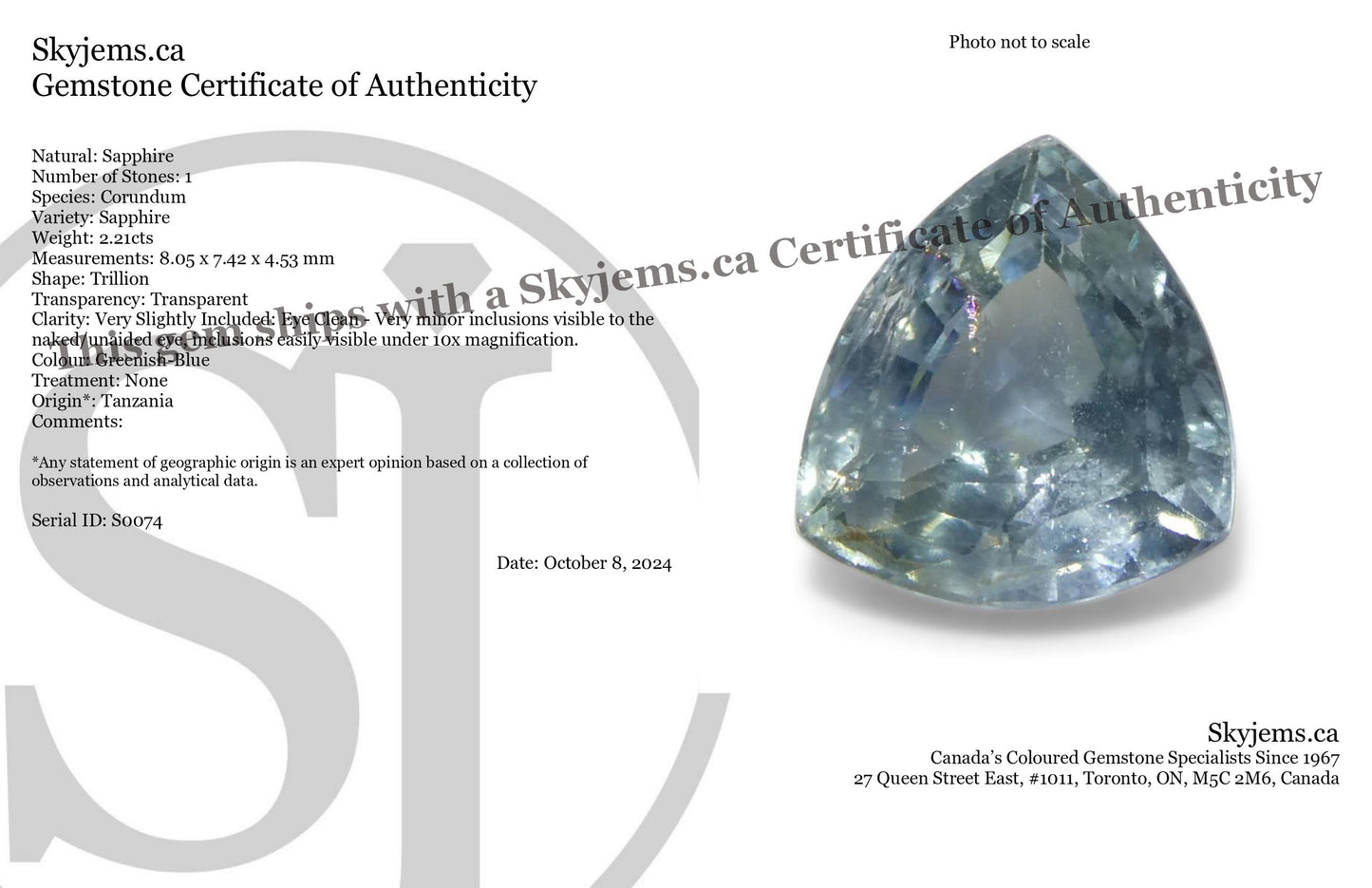 Email linda@skyjems.ca and we’ll send you a complete invoice with all duties & tariffs included, no surprises at checkout