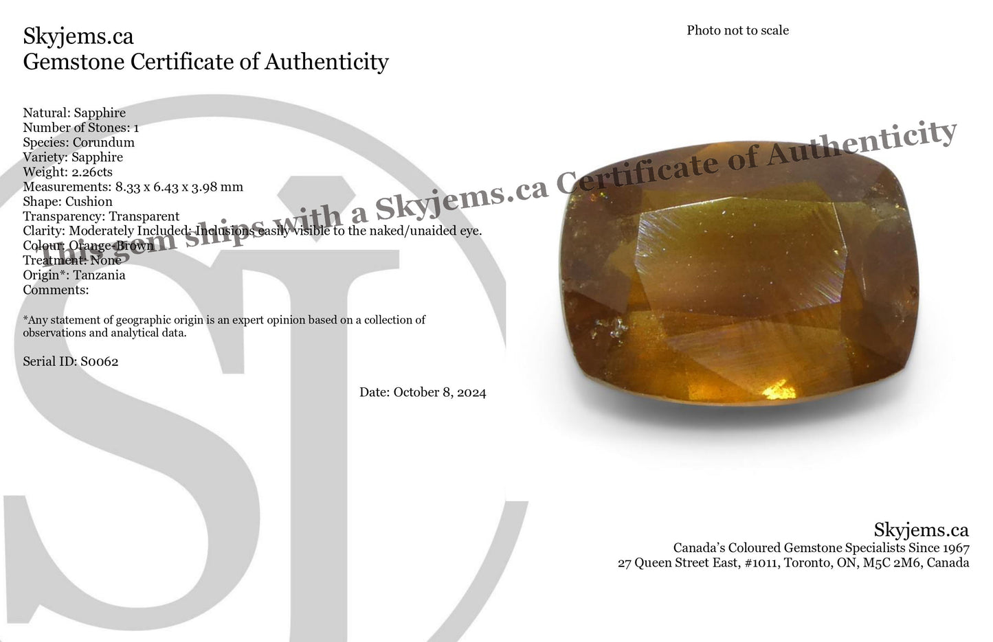 2.26ct Cushion Orange-Brown Sapphire from Tanzania, Unheated