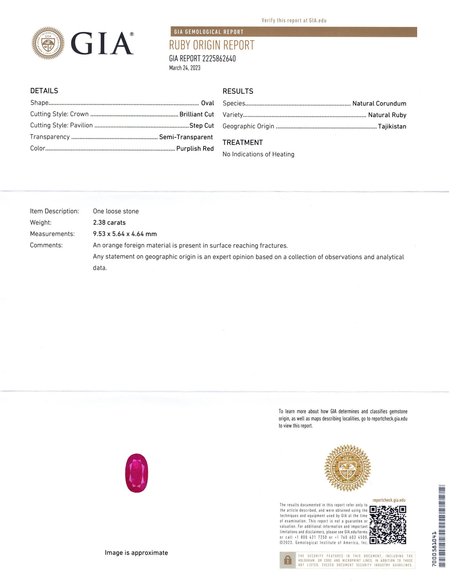 2.38ct Oval Purplish Red Ruby GIA Certified Tajikistan Unheated