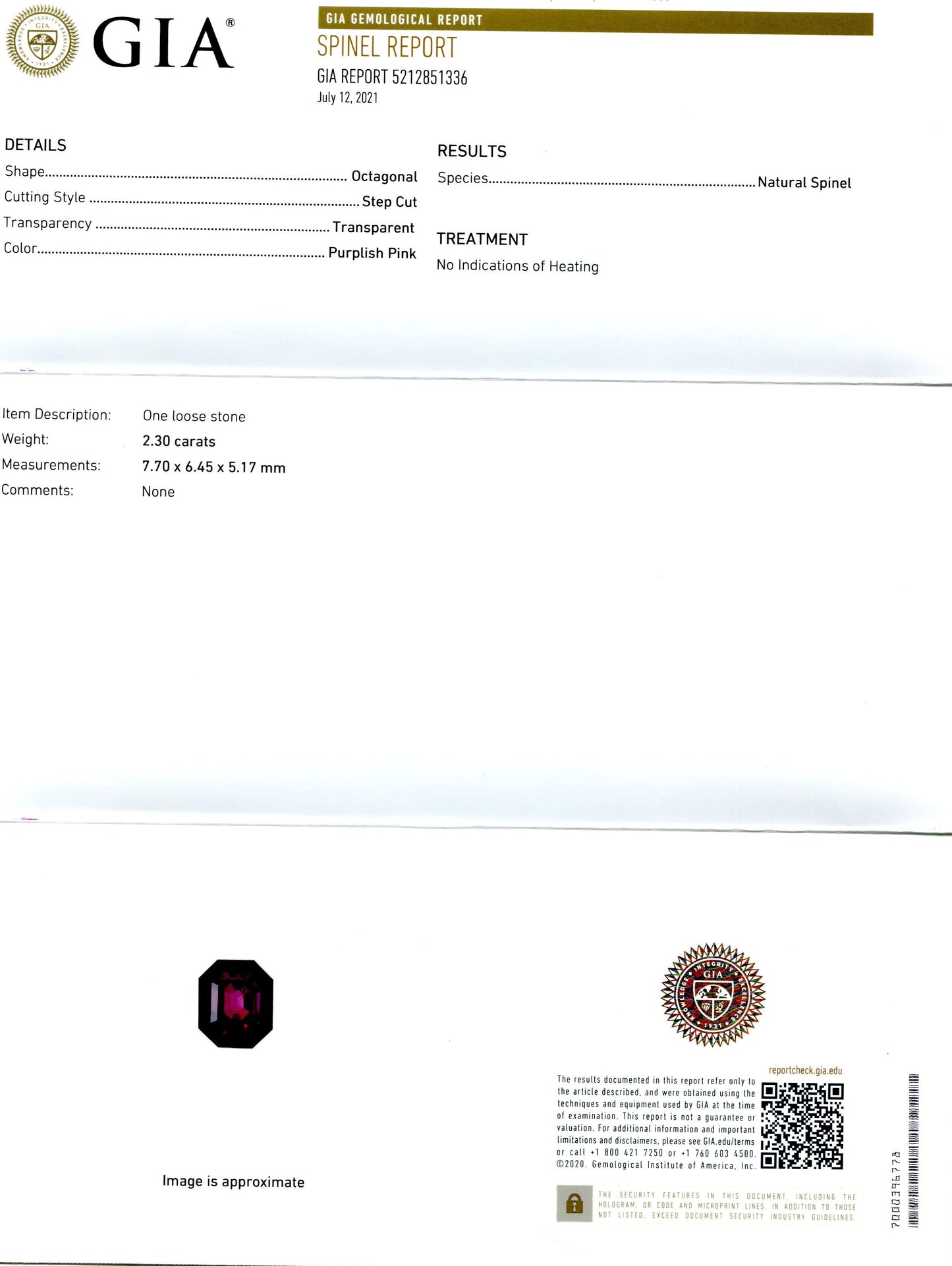 2.3ct Octagonal/Emerald Cut Purplish Pink Spinel GIA Certified Unheated