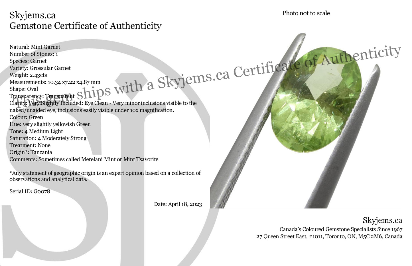 Notes: Sometimes called Merelani Mint or Mint Tsavorite