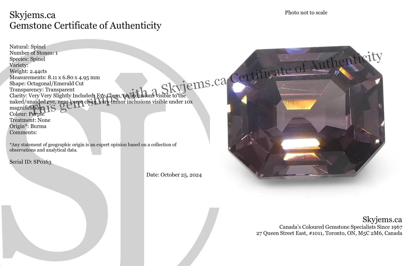 2.44ct Octagonal/Emerald Cut Purple Spinel from Burma Unheated