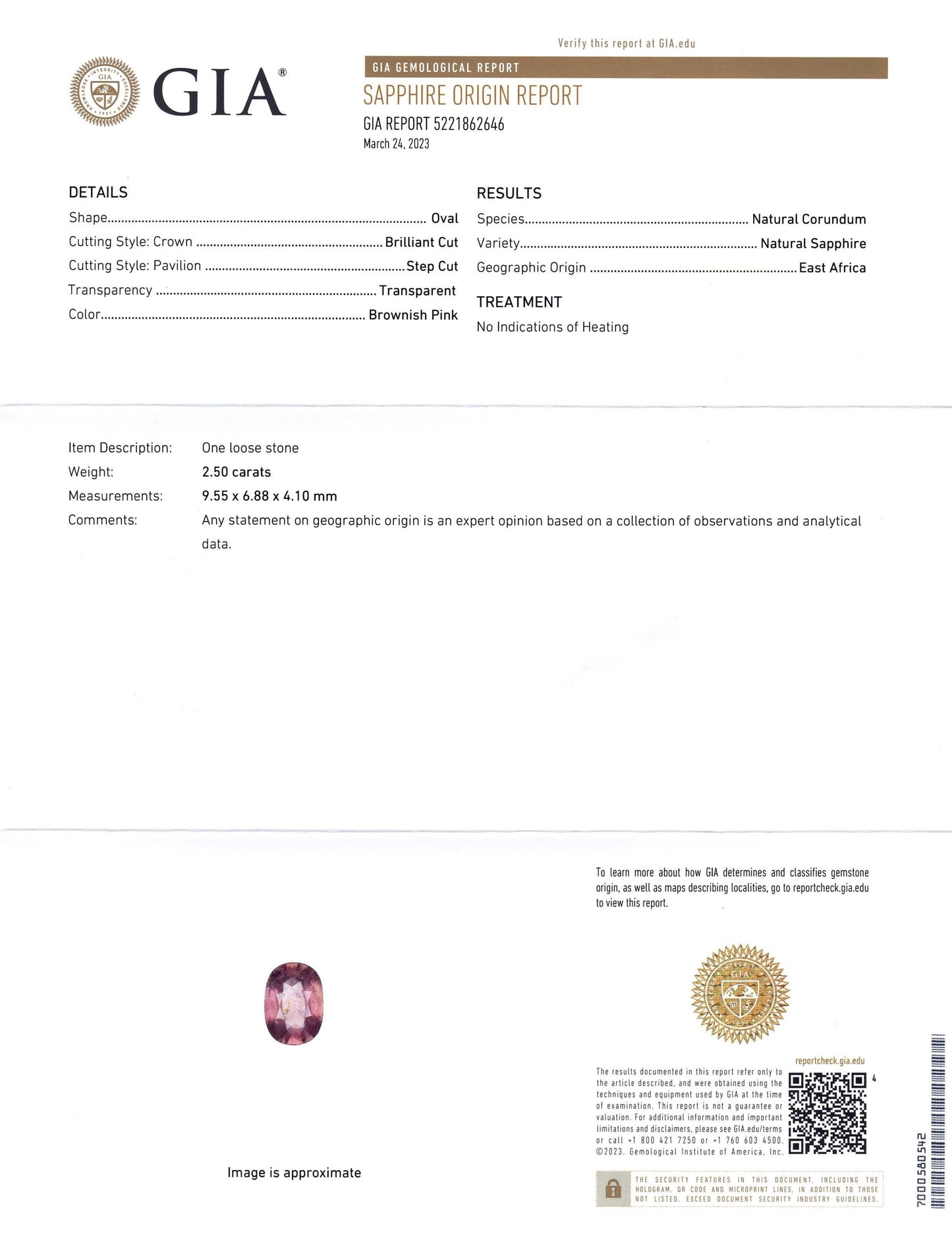 2.5ct Oval Opalescent Brownish Pink Sapphire GIA Certified East Africa Unheated