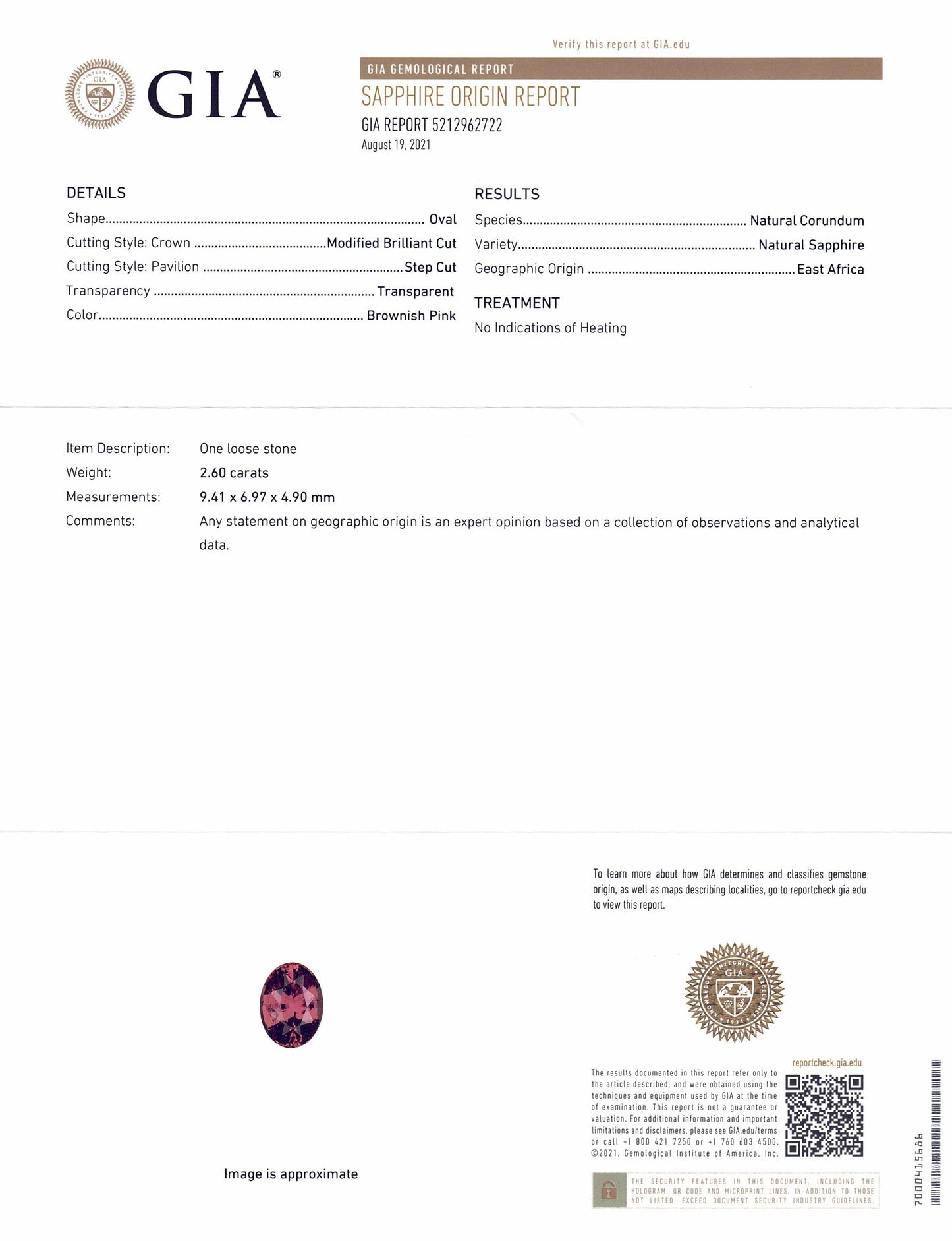 2.60ct Oval Brownish Pink Sapphire GIA Certified East Africa Unheated
