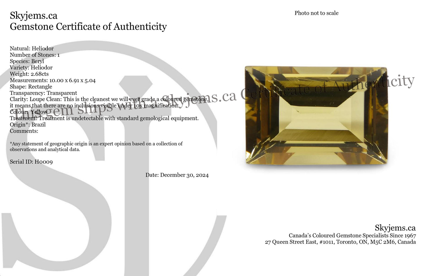 2.68ct Rectangle Heliodor, Golden Yellow Beryl