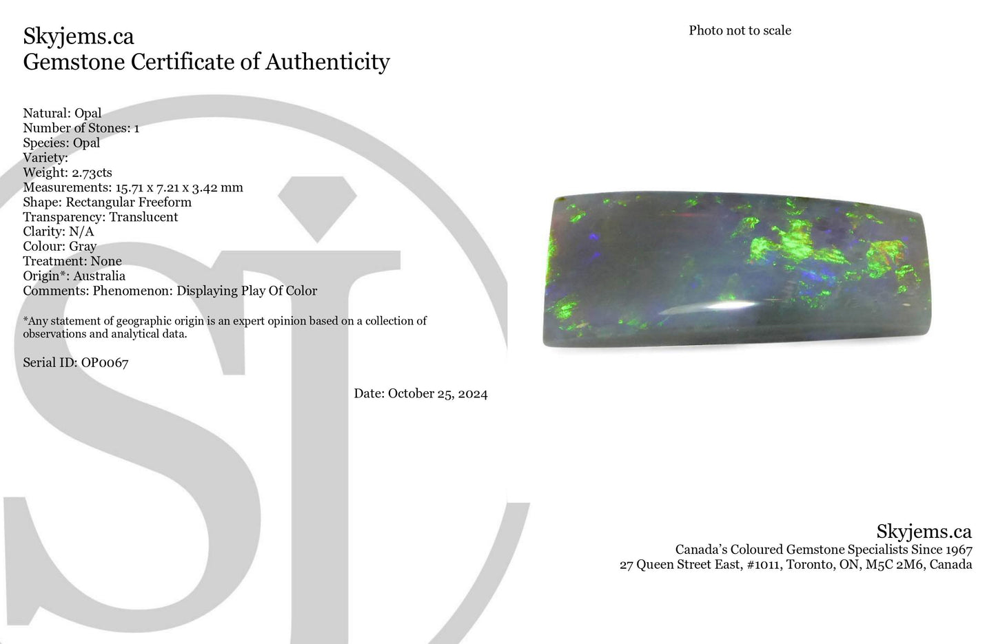 2.73ct Rectangular Freeform Cabochon Gray Opal from Australia