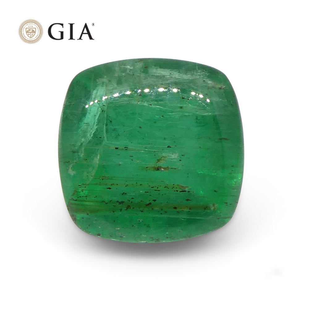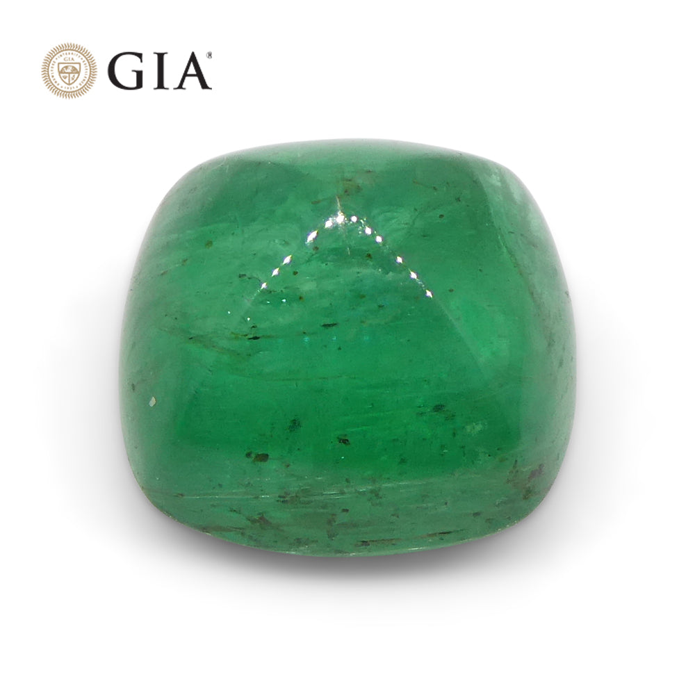 2.77ct Cushion Sugarloaf Double Cabochon Green Emerald GIA Certified Zambia