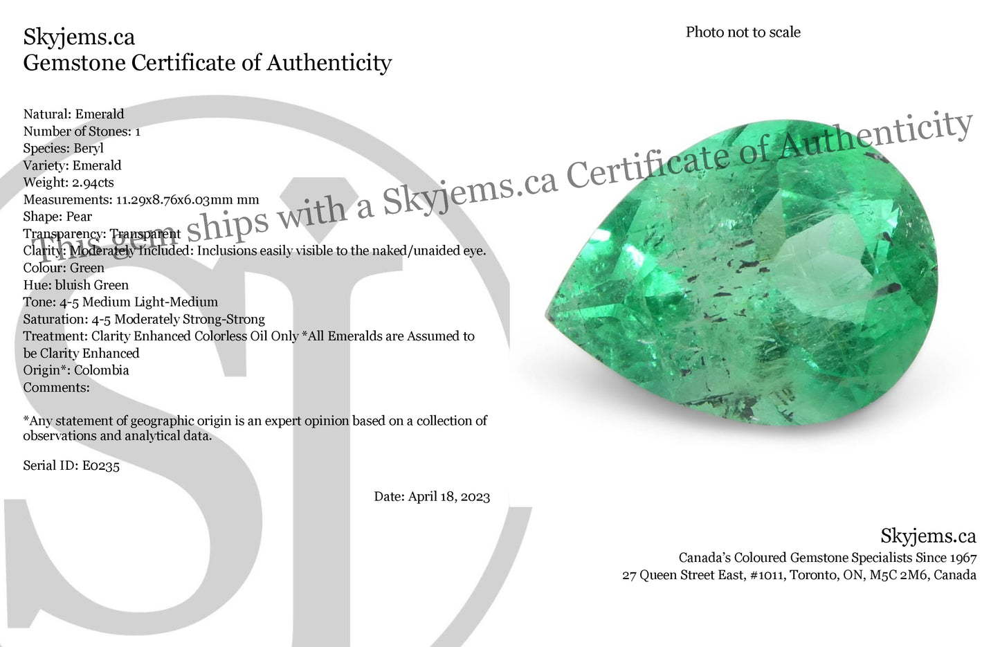 Treatment: Clarity Enhanced Colorless Oil Only *All Emeralds are Assumed to be Clarity Enhanced