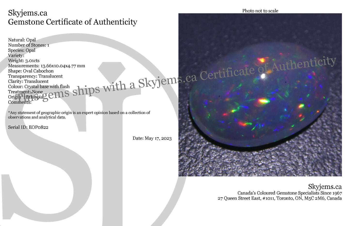 Notes: This opal is naturally porous and may absorb and/or lose liquid resulting in temporary changes in weight and appearance.