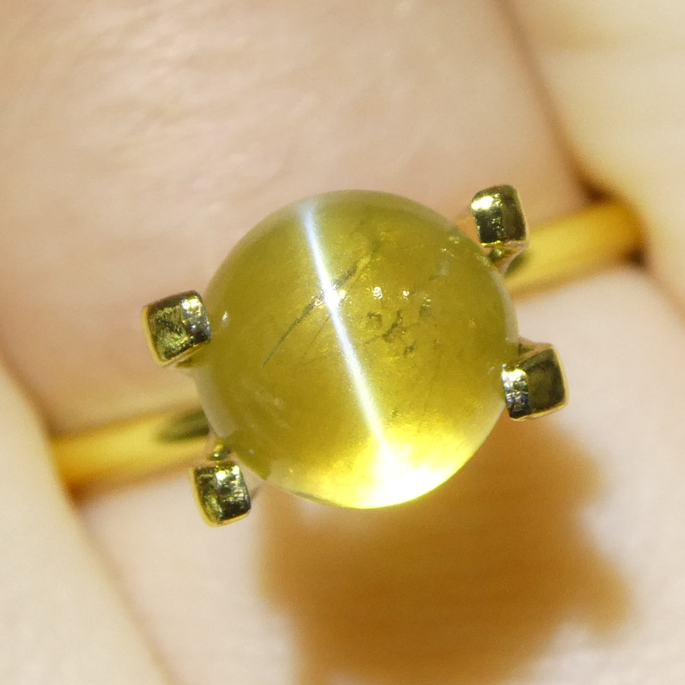3.06ct Round Cabochon Greenish-Yellow Cats Eye Chrysoberyl