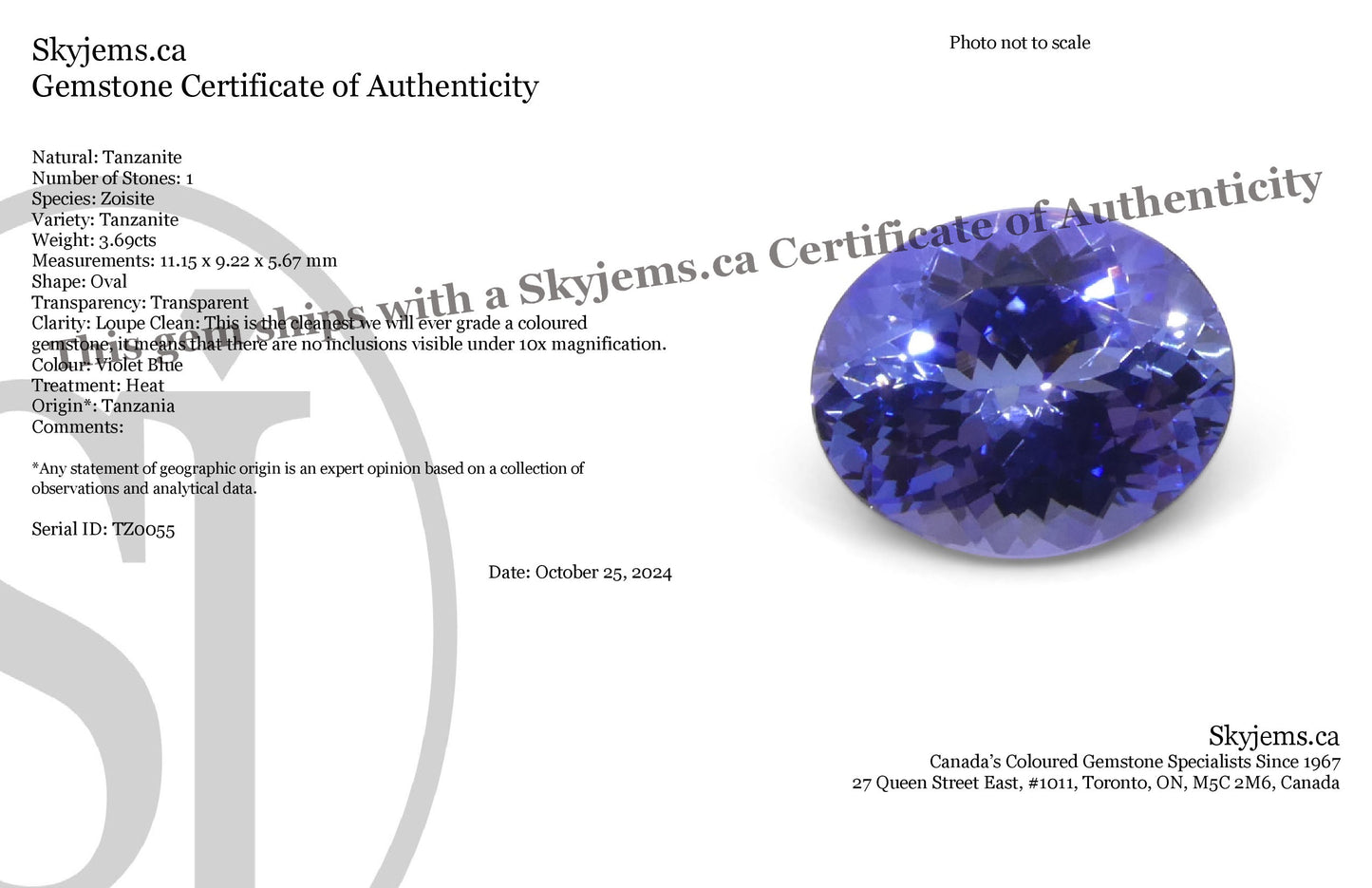 3.69ct Oval Violet Blue Tanzanite from Tanzania