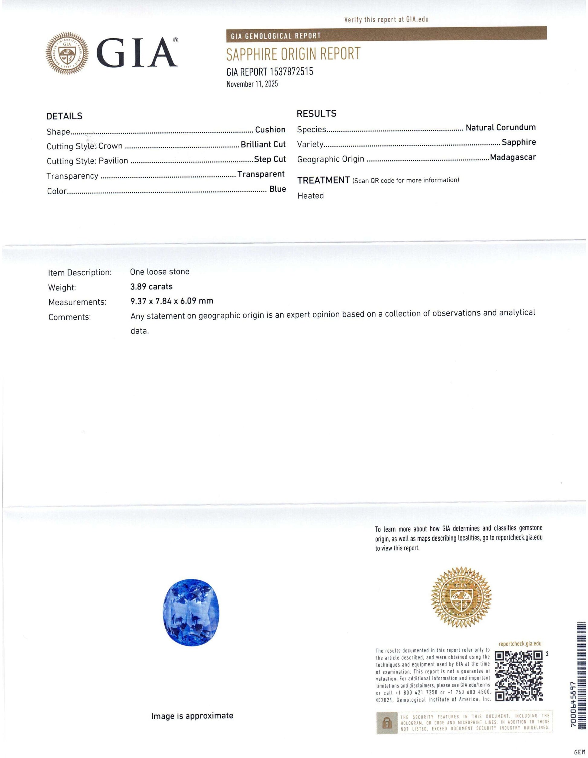 3.89ct Oval Blue Sapphire, Diamond Pendant set in Platinum, GIA Certified Madagascar