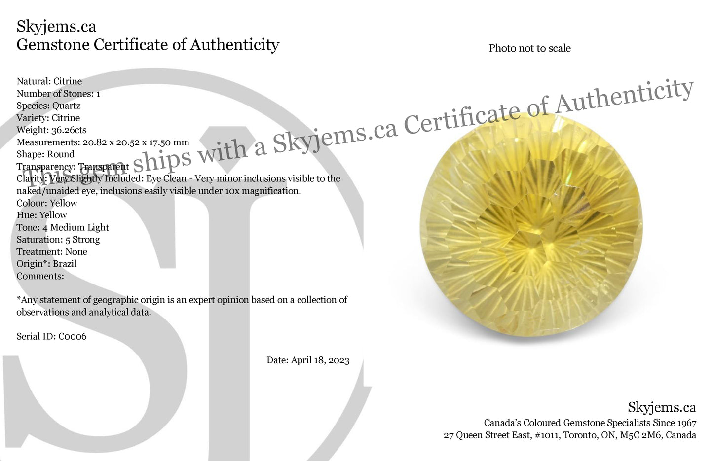 36.26ct Round Yellow Honeycomb Starburst Citrine
