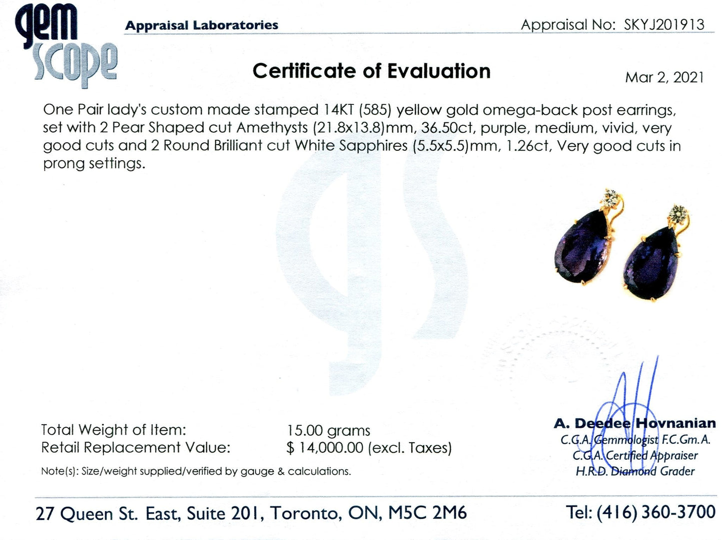 Retail Replacement Value: $ 14,000.00 (excl. Taxes)