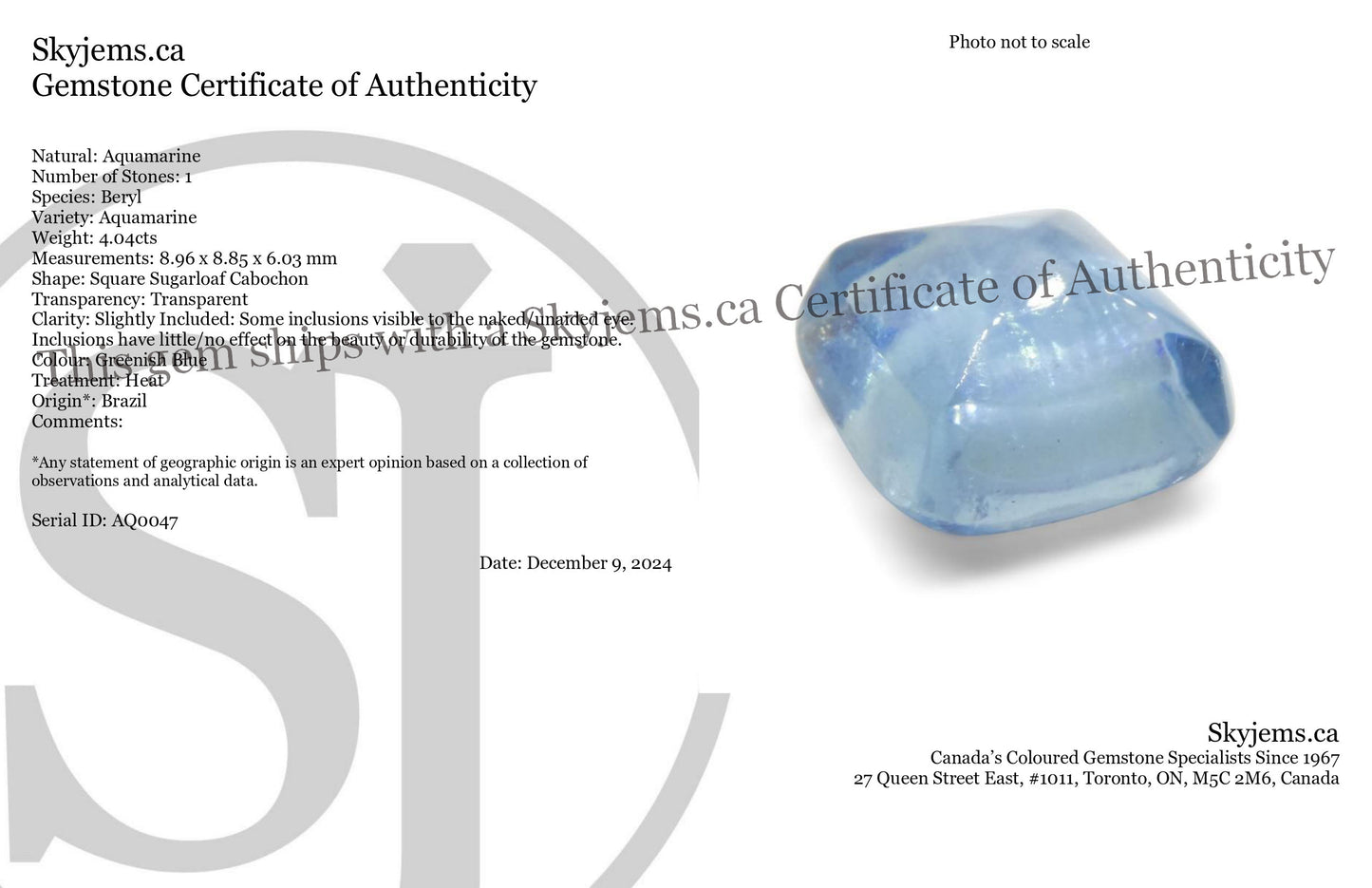 4.04ct Square Sugarloaf Cabochon Blue Aquamarine from Brazil