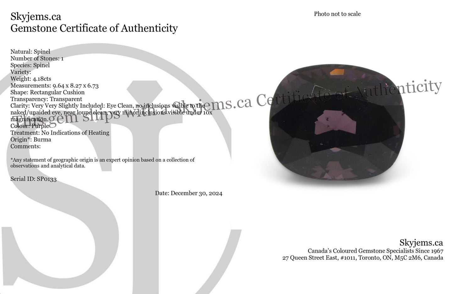 4.18ct Rectangular Cushion Purple Spinel from Burma