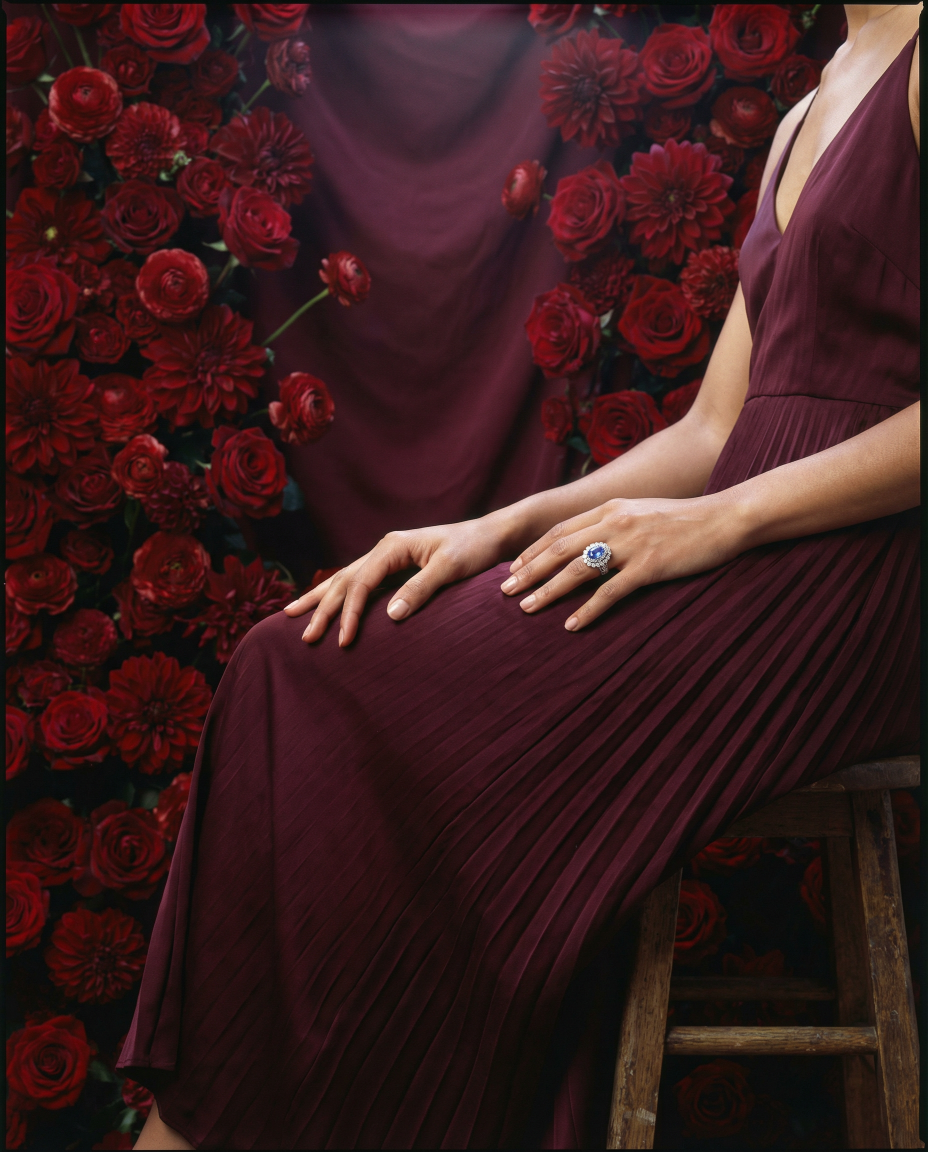 Surrounding the centre stone, a halo of brilliant diamonds adds dazzling contrast and amplifies the sapphire’s natural colour and fire. The cushion cut enhances both the gemstone’s allure and its light performance, creating a beautifully balanced silhouette that flatters the finger from every angle.