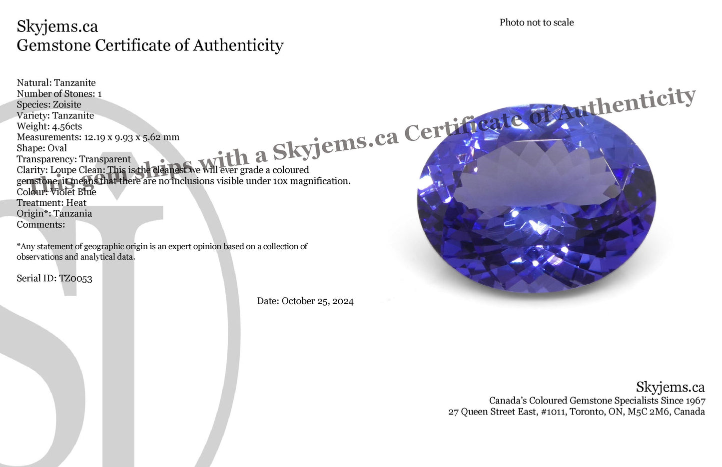 4.56ct Oval Violet Blue Tanzanite from Tanzania