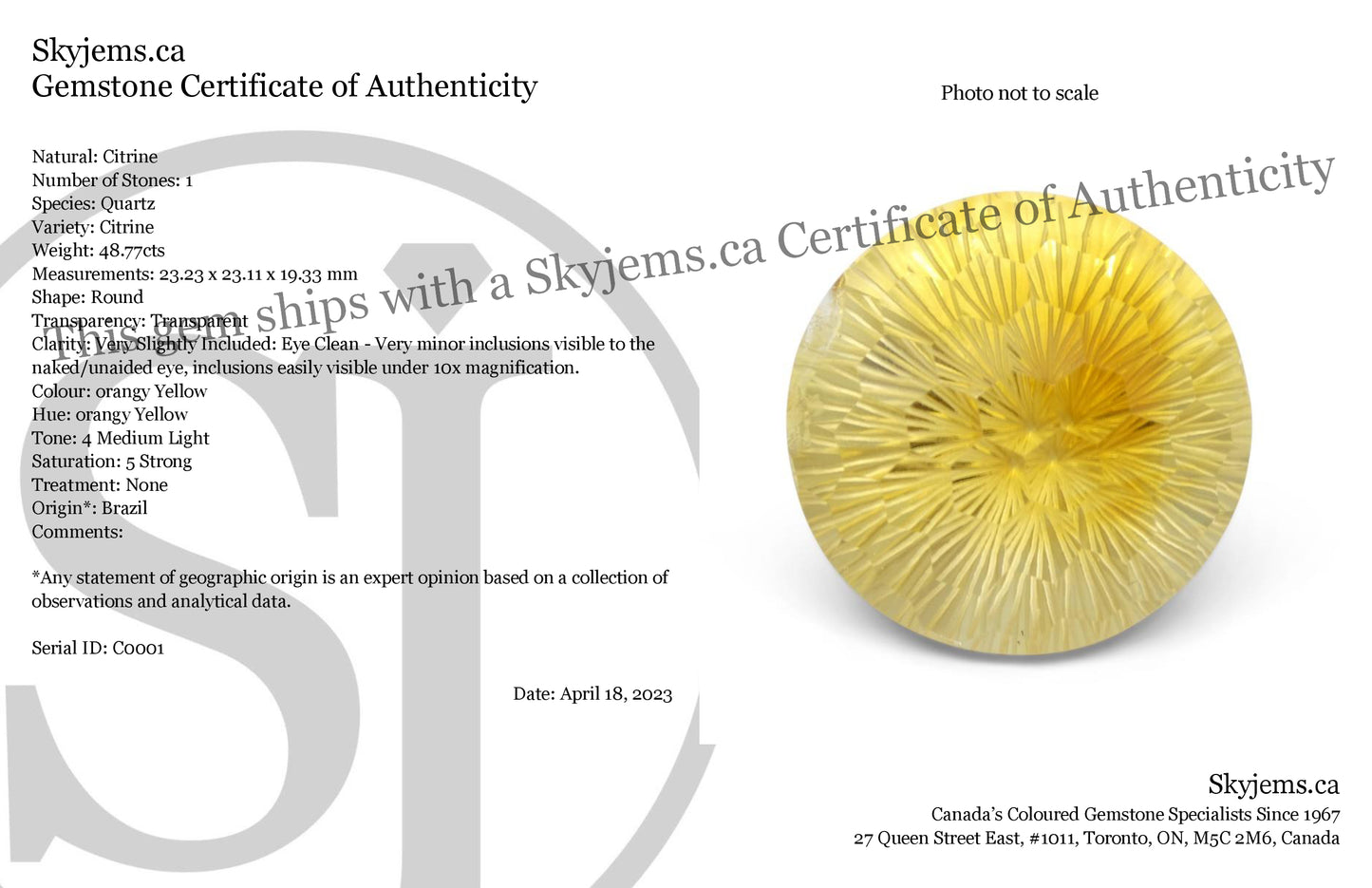 48.77ct Round Yellow Honeycomb Starburst Citrine