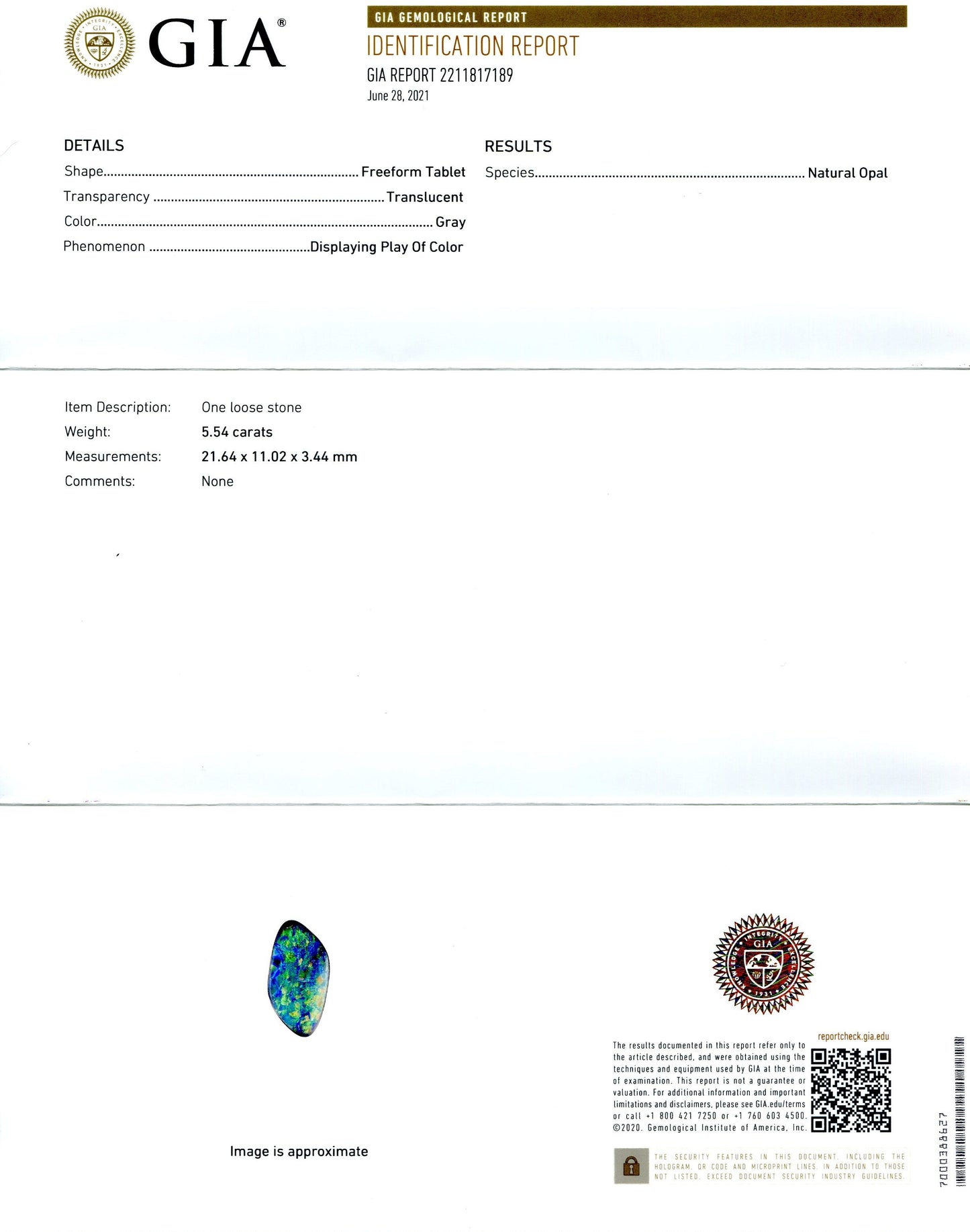 5.54ct Freeform Tablet Semi Black Opal GIA Certified Australia