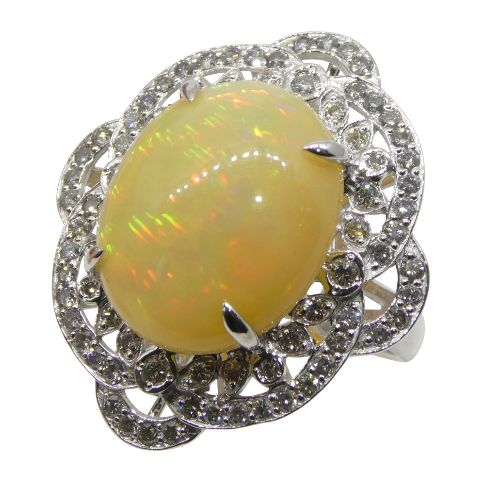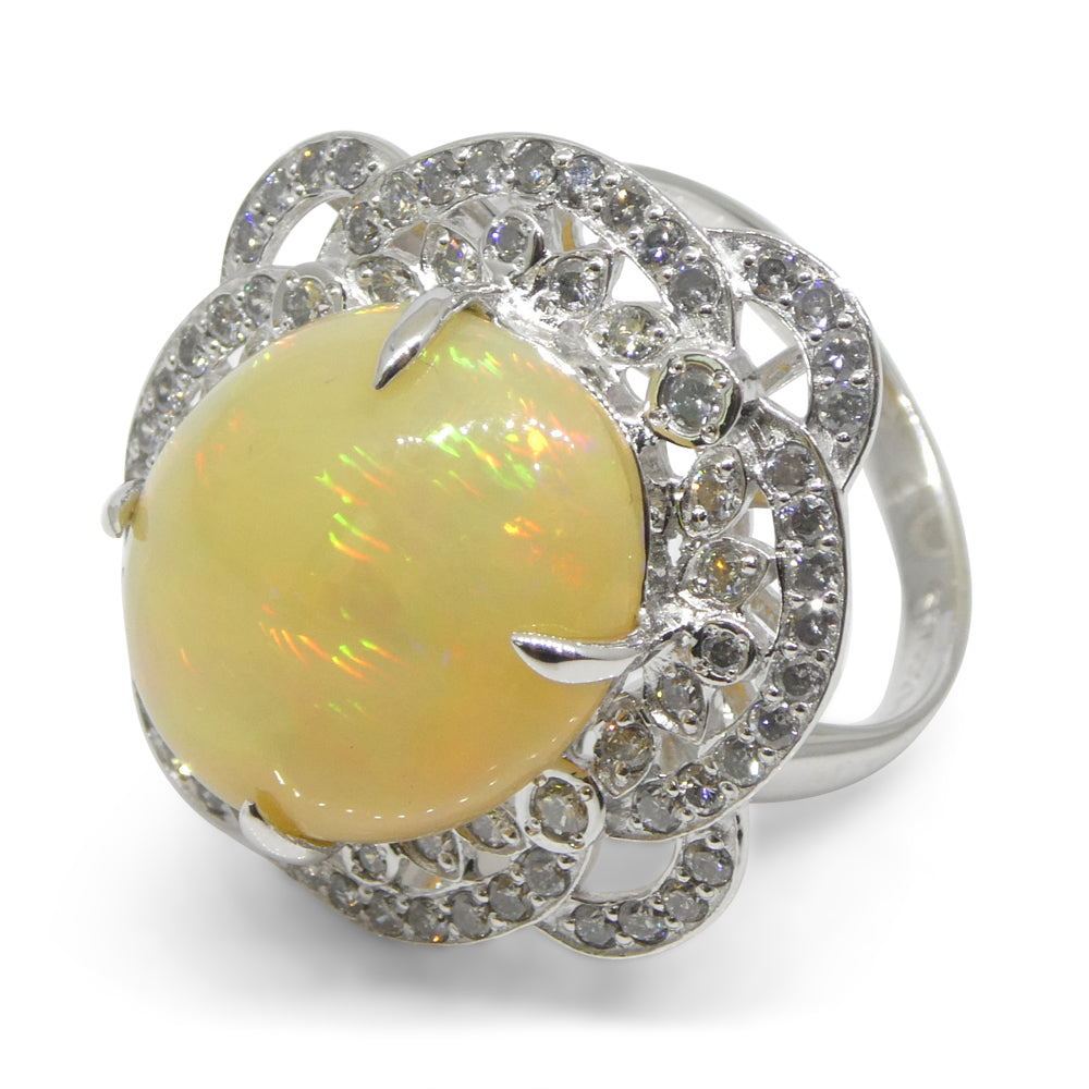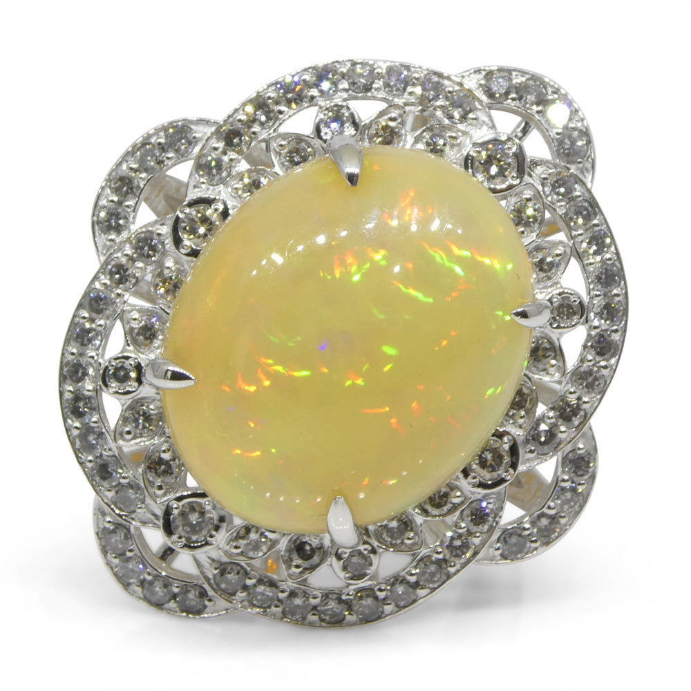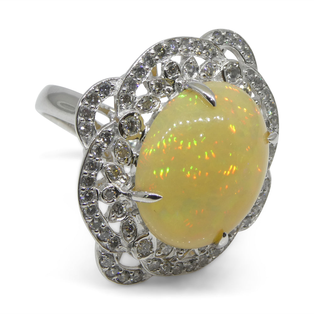 Presenting a 5.55ct Opal and Diamond Ballerina Cocktail or Engagement Ring, meticulously crafted in platinum. At Skyjems.ca, our three-generation legacy is woven into every creation, reflecting our unwavering commitment to exceptional quality. This exquisite ring is designed to captivate, offering not just a stunning visual statement but also a timeless symbol of love and elegance. Ideal as a cherished gift or a personal treasure, this ring celebrates individuality and serves as a lasting emblem of affection.