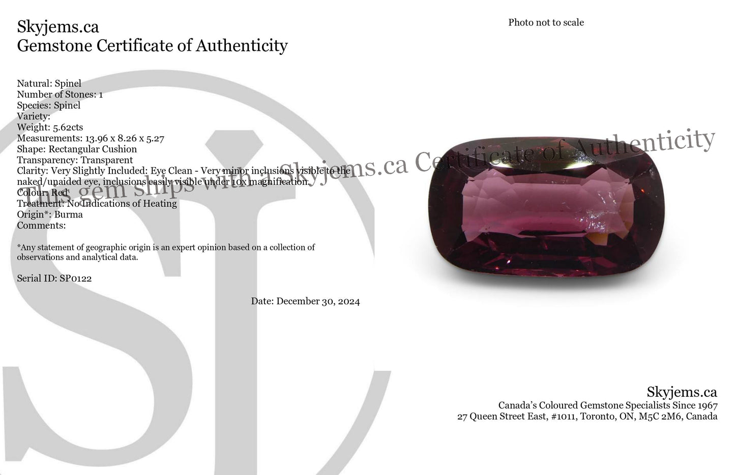5.62ct Rectangular Cushion Red Spinel from Burma