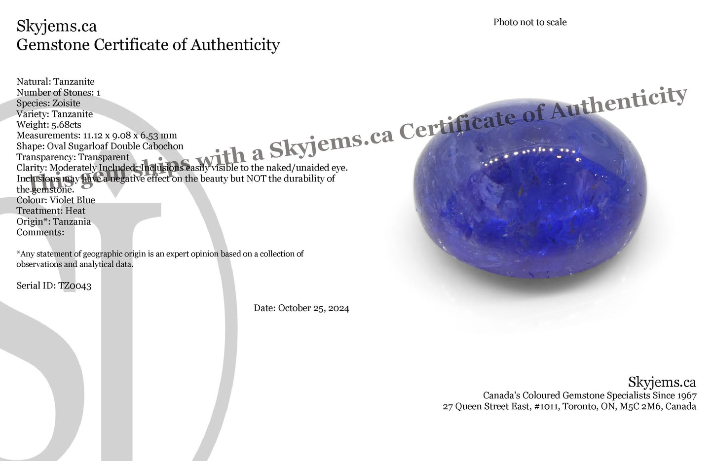 Email linda@skyjems.ca and we’ll send you a complete invoice with all duties & tariffs included, no surprises at checkout