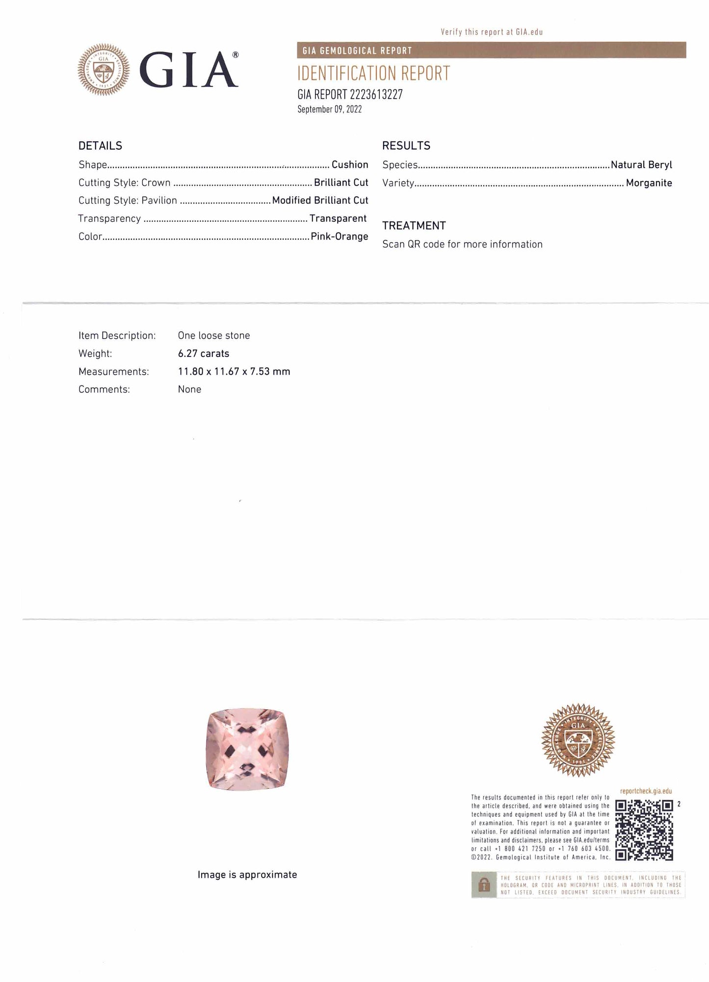 6.27ct Cushion Pink-Orange Morganite GIA Certified