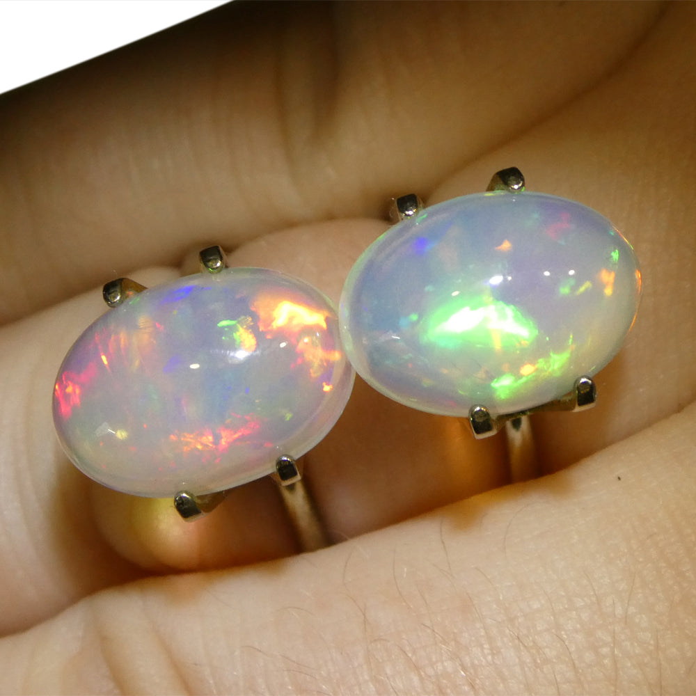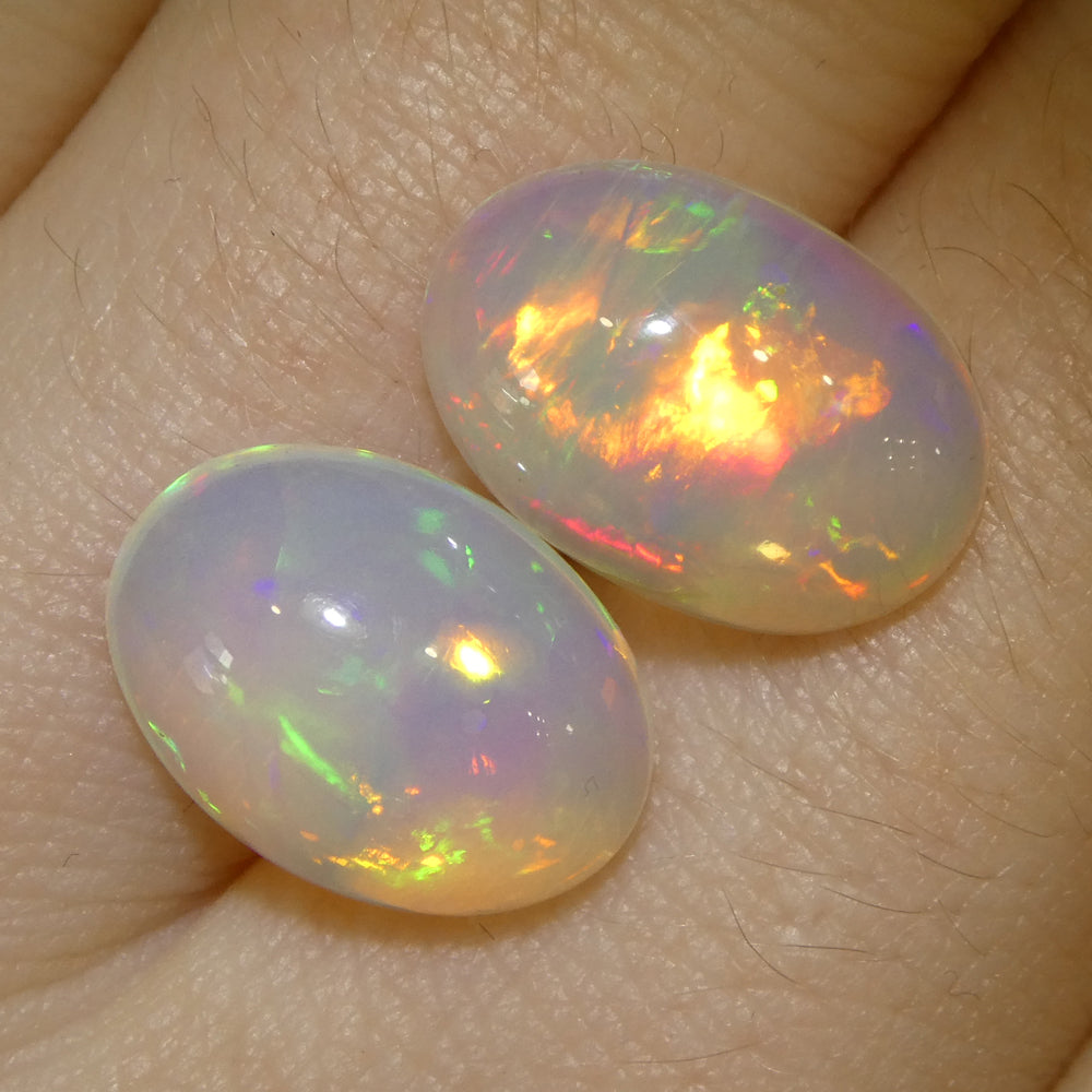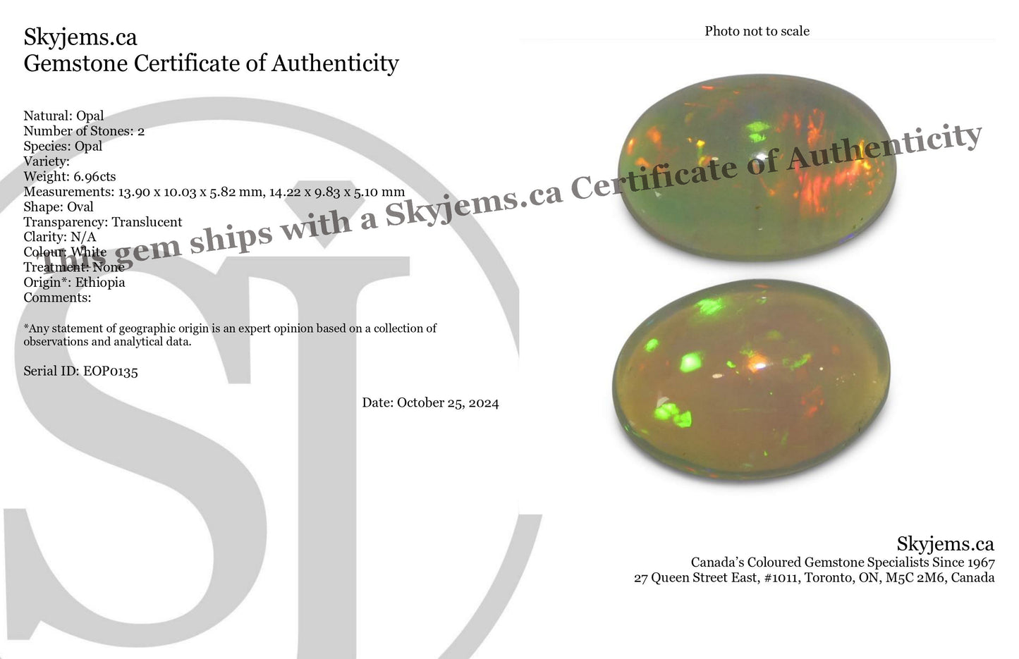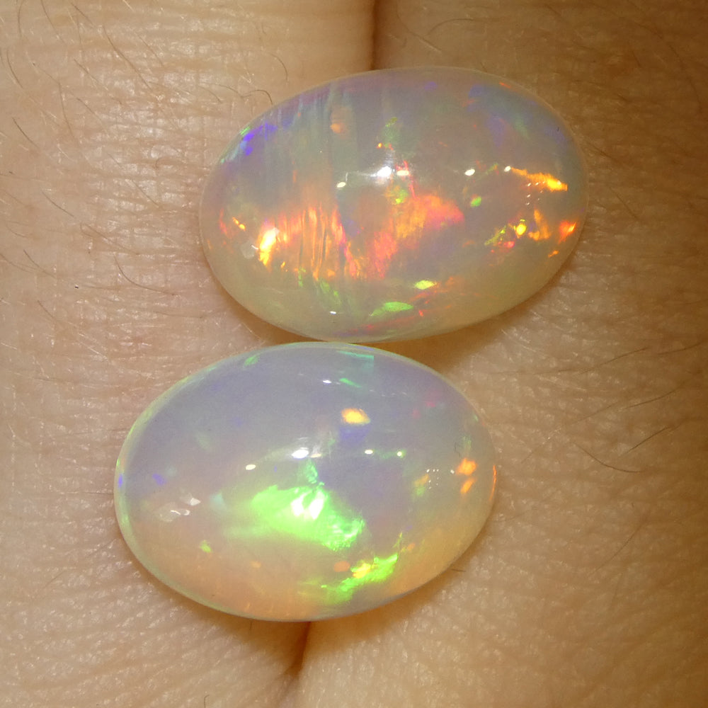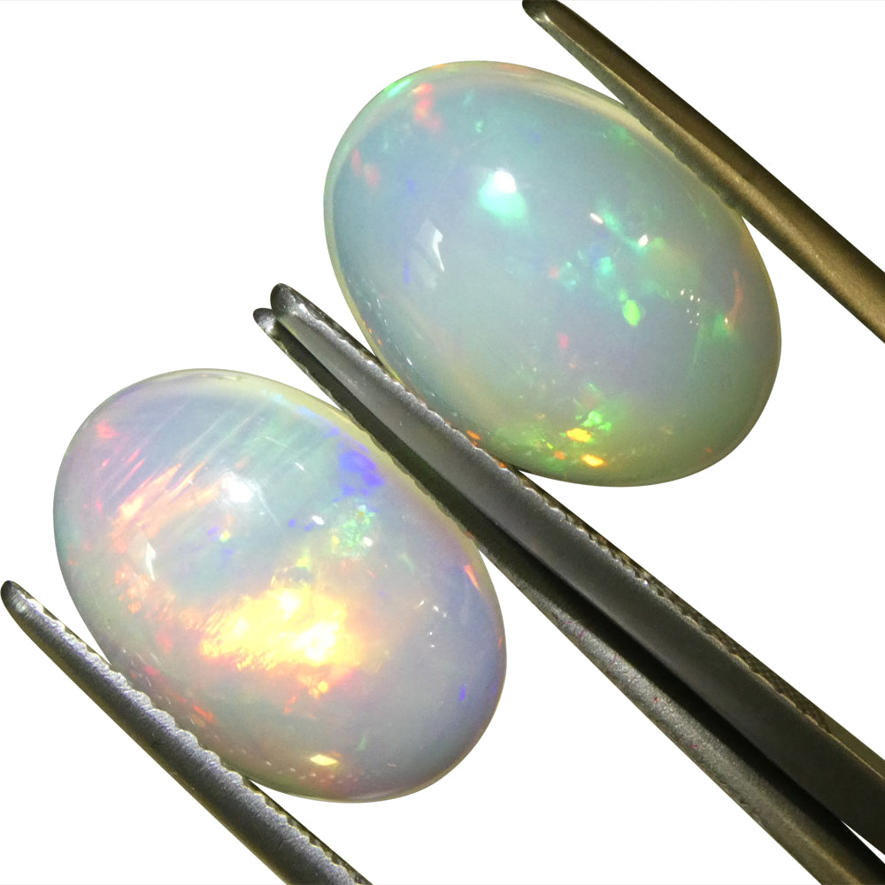 6.96ct Pair Oval Cabochon White Crystal Opal from Ethiopia