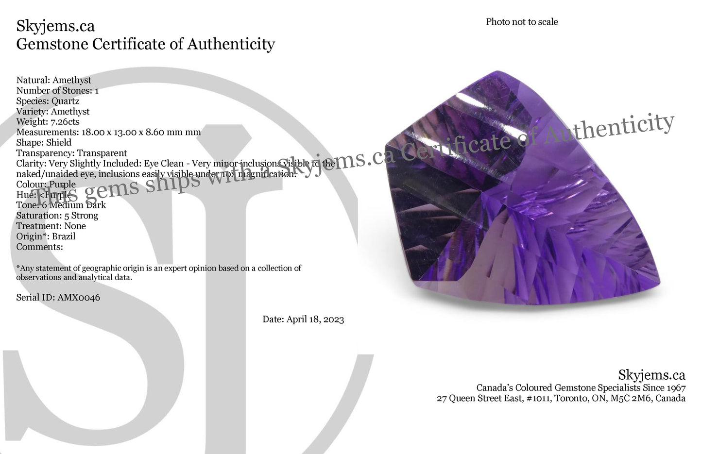 7.26ct Shield Amethyst 'Eleanor' Fantasy/Fancy Cut