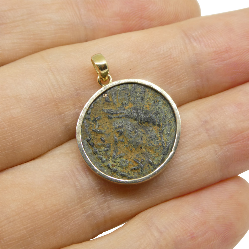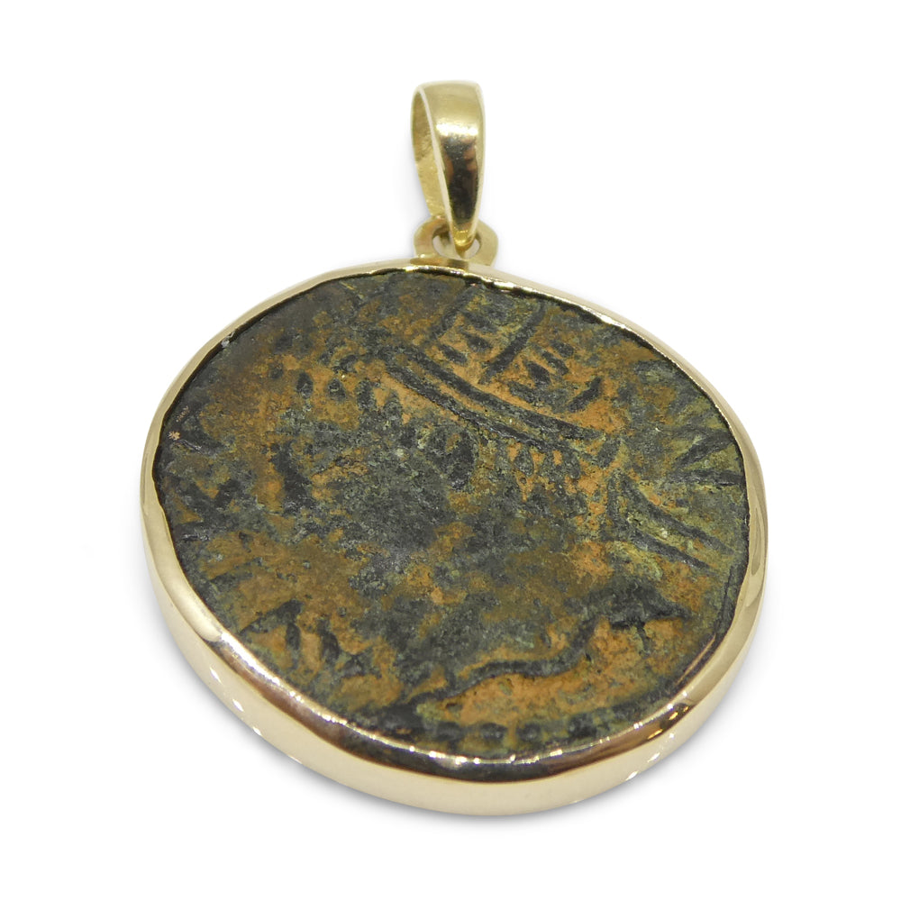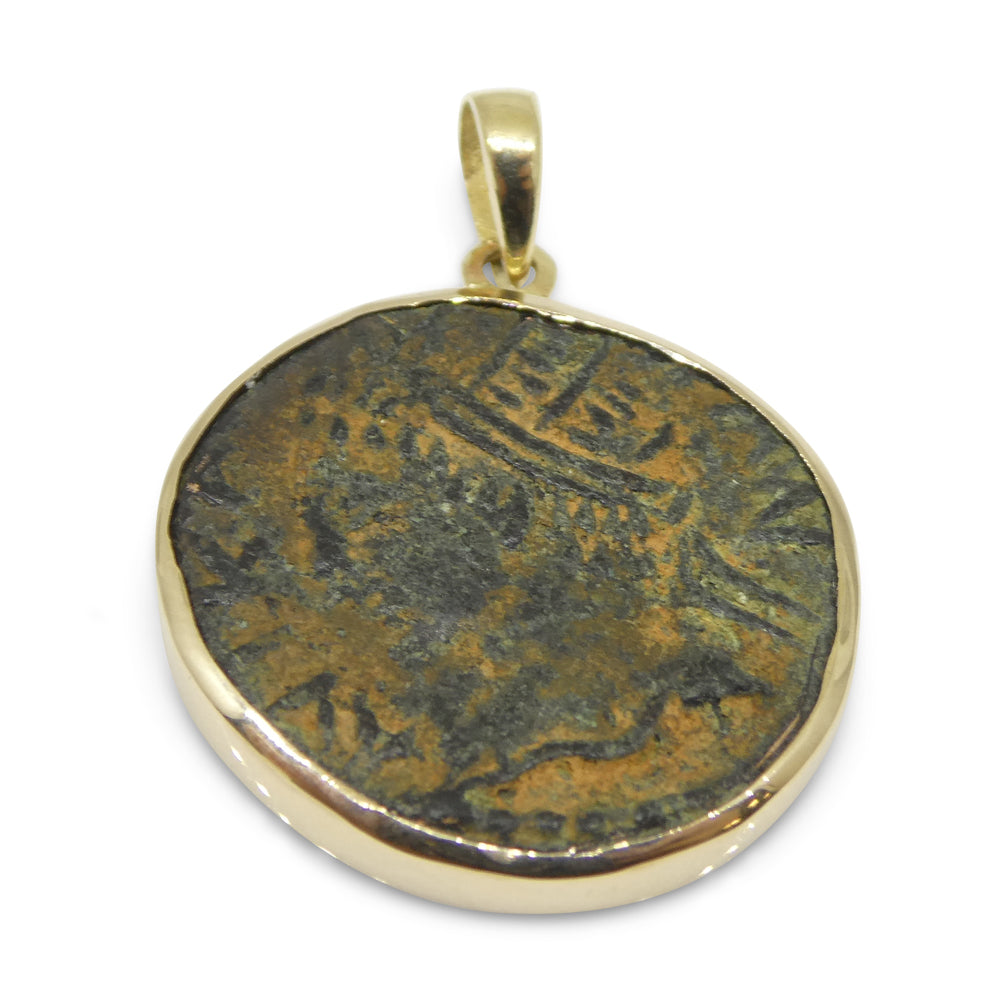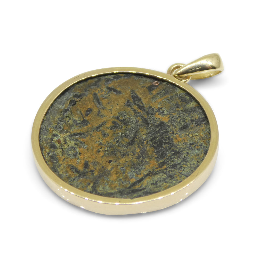 Authentic Ancient Mesopotamia Edessa Elagabalus Coin Pendant in 14K Yellow Gold