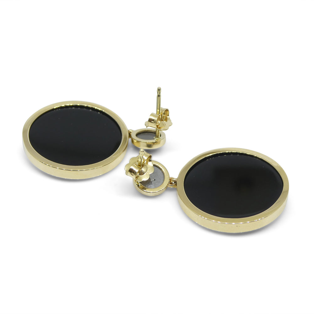 Crafted from 14K yellow gold, these earrings exude luxury and refinement. The warm and rich tone of the gold beautifully complements the black agate and diamonds, adding a touch of elegance to the overall design. The gold settings are expertly crafted to ensure maximum comfort and secure wear, allowing you to showcase these stunning earrings with confidence.