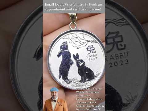 Year of the Rabbit Half Ounce Australian Coin Necklace set in Sterling Silver with a 14k Yellow Gold Bail